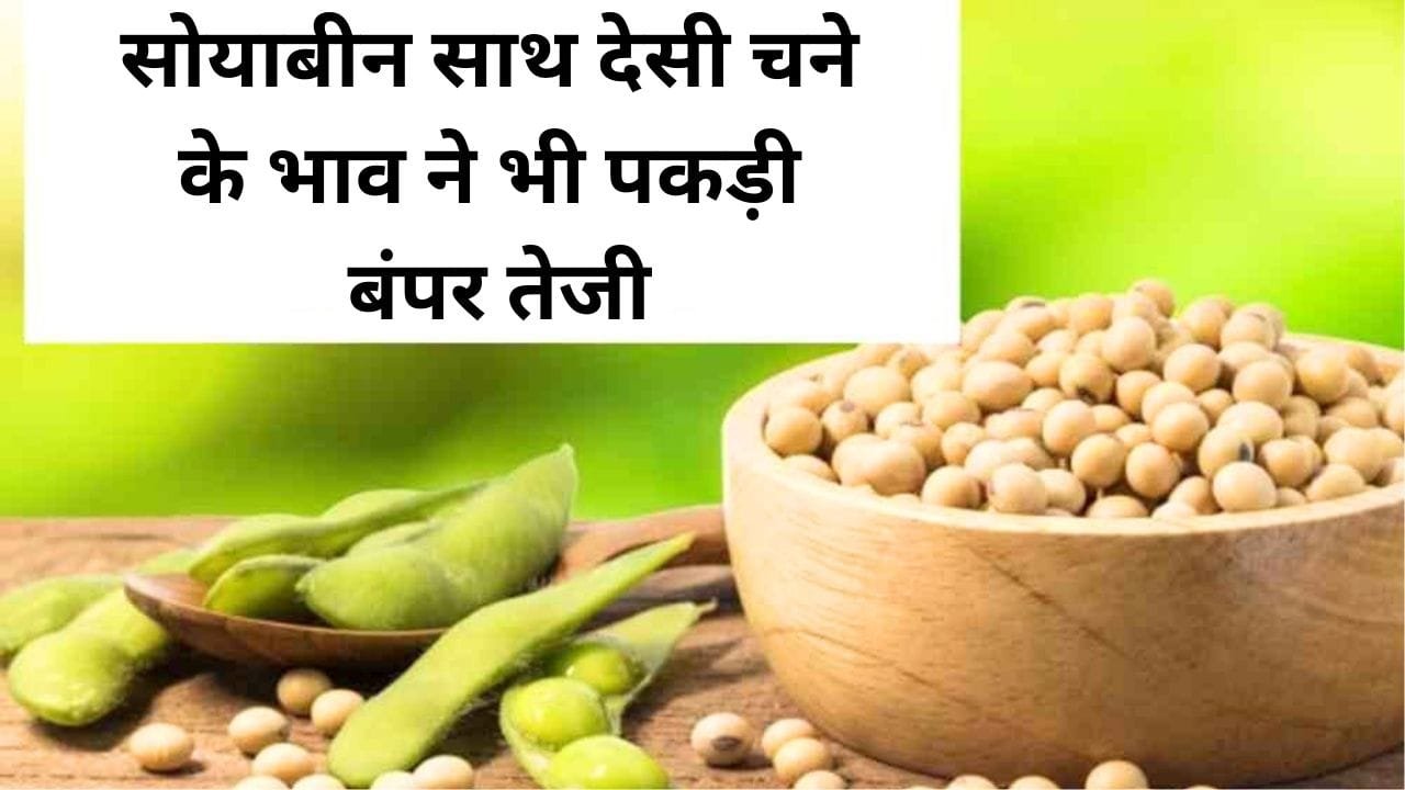 वही सोयाबीन में ₹200 की तेजी देखने को मिली है। जिसके साथ सोयाबीन के भाव लगभग 3800 पर जा पहुंचे हैं। वही चने की अगर बात करते हैं तो डालर चने के भाव लगभग बीते दिन में ₹300 की गिरावट आई थी वही आज ₹300 की तेजी आ चुकी है। देसी चने के रेट में लगभग ₹900 की वृद्धि हुई हुई थी। वही आज चने के भाव में ₹1500 की तेजी देखने को मिली है।