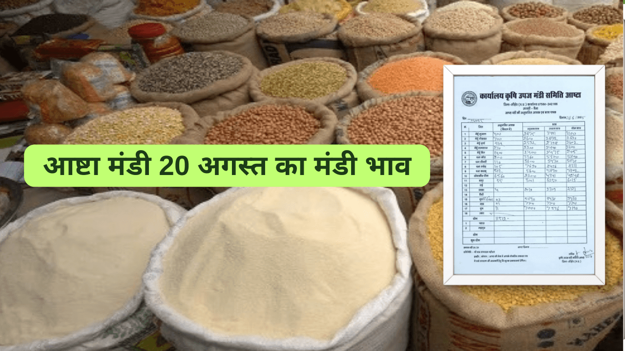 आज 20 अगस्त 2025 को आष्टा मंडी में कुल 7065 क्विंटल की आवक रही। आज मंडी में बहुत सारे फसलों जैसे गेहूं, चना, सोयाबीन, प्याज....