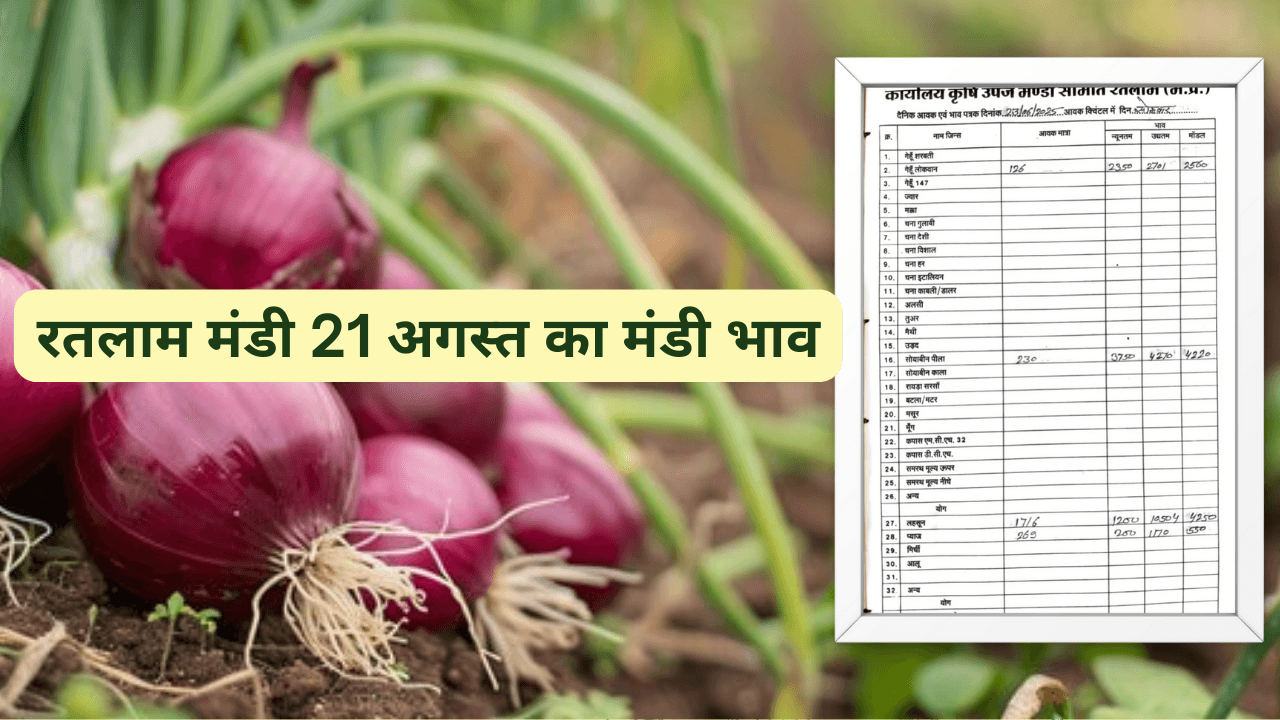 आज 21 अगस्त 2025 को रतलाम मंडी में सबसे ज्यादा आवक गेहूं, प्याज और सोयाबीन के रहें। डालर चना का भाव मंडी में सबसे ज्यादा....