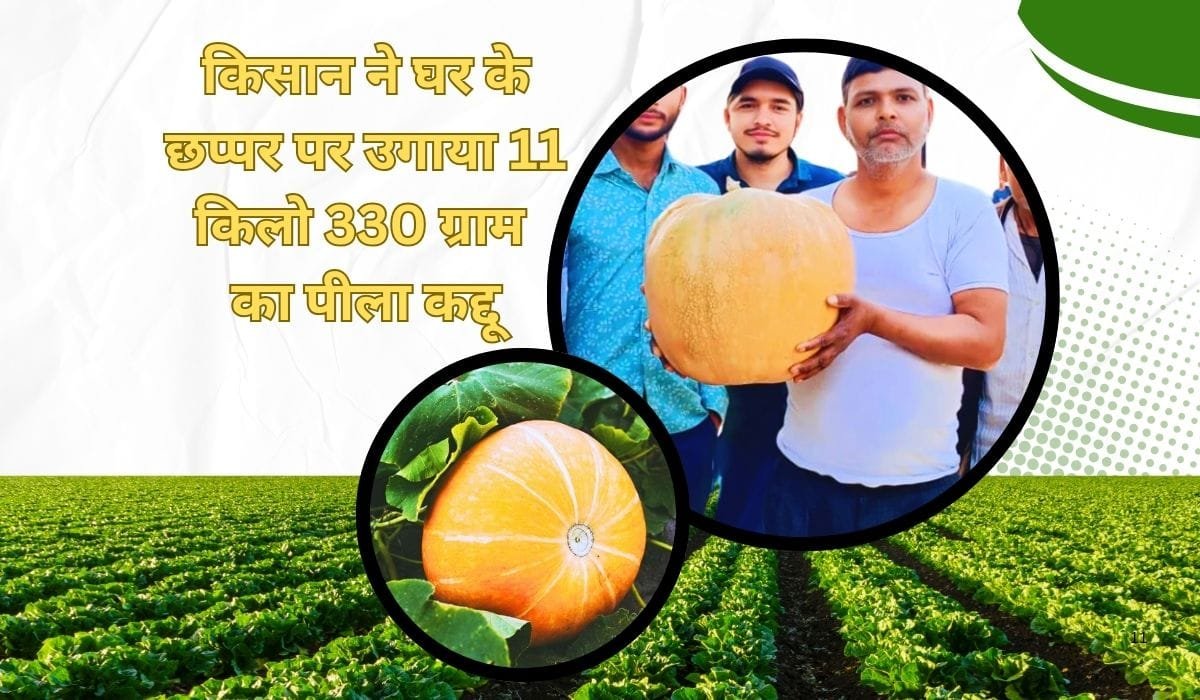 किसान ने घर के छप्पर पर उगाया 11 किलो 330 ग्राम का पीला कद्दू, स्वाद में है बेमिसाल