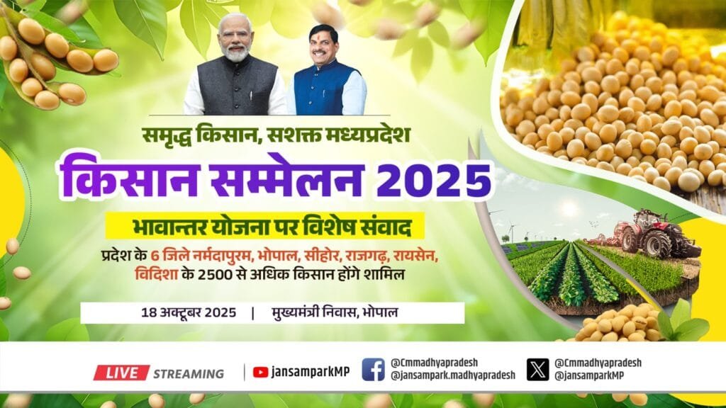 आज 18 अक्टूबर 2025, धनतेरस के त्यौहार के साथ राज्य स्तरीय किसान सम्मेलन का आयोजन भी हो रहा है, जिसमें MP के किसानों को कई सौगात मिलेंगी। तो चलिए इसके बारे में जानते हैं।