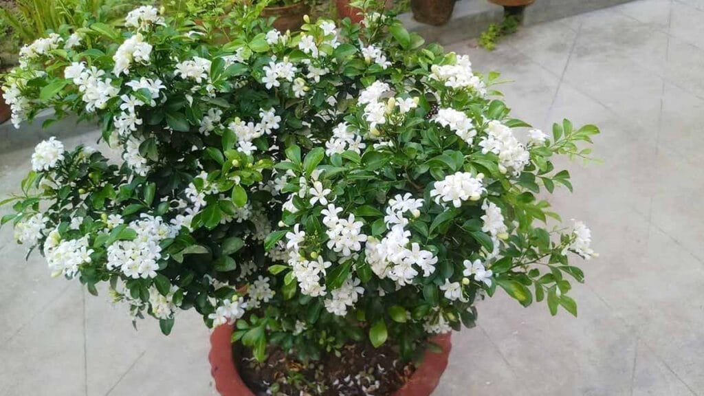 चांदनी एक लोकप्रिय सदाबहार पौधा है जिसे क्रेप जैस्मिन या पिनव्हील जैस्मिन के नाम से भी जाना जाता है इसके फूल तारा-आकार के होते है जो अपने सफेद, सुगंधित फूलों के लिए जाने जाते है। इसके फूलों में से बहुत ज्यादा अच्छी महक आती है जो पूरे वातावरण को खुशबू से भर देते है। चांदनी के पौधे को ज्यादा देखरेख की जरूरत नहीं होती है। इसलिए चांदनी का पौधा घर में जरूर लगाना चाहिए।