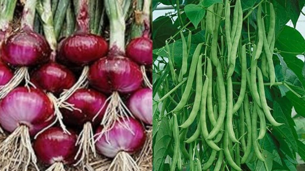बीन्स और प्याज को कभी भी एक साथ नहीं लगाना चाहिए क्योकि बीन्स मिट्टी में नाइट्रोजन जोड़ते है जबकि प्याज को कम नाइट्रोजन वाली मिट्टी पसंद होती है। प्याज मिट्टी में ऐसे रसायन छोड़ती है। जो बीन्स की जड़ों पर असर डालती हैं। जिससे दोनों सब्जियों का विकास अच्छे से नहीं होता है। इसलिए इन दोनों को एक साथ नहीं लगाना चाहिए।