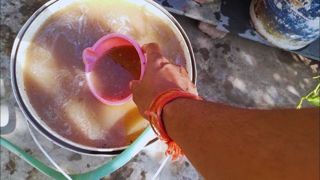 सरसों की खली से खाद बनाने के लिए सबसे पहले आपको एक मटका या प्लास्टिक कंटेनर, 250 ग्राम सरसों की खली, 2.5 लीटर पानी, 2.5 गोबर की कम्पोस्ट खाद का पानी को लेना है फिर इन सभी चीजों को कंटेनर में एक एक करके डालना है। और लकड़ी की मदद से मिक्स करके छांव वाली जगह पर 3 दिन के लिए ढक कर रख देना है। तीन दिन बाद ये खाद बनाकर तैयार हो जाएगी इसे इस्तेमाल करने के लिए आपको बता दें अगर आप एक लीटर सरसों की खली की इस लिक्विड खाद को ले रहे है तो इसे 10 गुना नार्मल पानी में डायलुट करना है फिर पौधें की मिट्टी की गुड़ाई करके इस फर्टिलाइजर को मिट्टी में डालना है प्रति पौधे में आप एक लीटर इस फर्टिलाइजर को डाल सकते है।