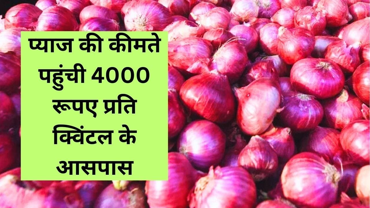 प्याज की कीमते पहुंची 4000 रूपए प्रति क्विंटल के आसपास। प्याज के भाव लगातार बढ़ते जा रहे है। बीते कई दिनों से मॉर्केट भाव में रोजाना उतार-चढ़ाव देखने को मिल रहा है। आज भी प्याज के भाव में लगातार तेजी बनी हुई है। आइए आज के तजा भाव के बारे में हम आपको विस्तार से बताते है।