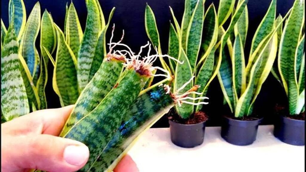 स्नेक प्लांट की एक पत्ती से नए पौधे तैयार करना बहुत ज्यादा आसान है बस आपको स्नेक प्लांट की एक पत्ती की बड़ी कटिंग लेनी है और उसे 3 मीडियम साइज में काट लेना है इसके बाद आपको इसकी तीनों कटिंग को एक गमले की मिट्टी में हलके हाथों से दबा देना है और उपर से पानी की सिंचाई कर देनी है। ऐसा करने से 2 हफ्ते के अंदर पत्तियों में जड़ निकल आएगी और फिर आप तीनों पौधों को अलग-अलग गमले में लगा सकते है जिससे पौधा तैयार हो जाएगा।