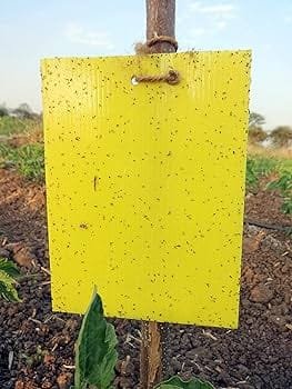 स्टिकी ट्रैप जो की कागज के छोटे-छोटे टुकड़े होते हैं जो की खूब खेतों में आपने देखे होंगे। यह मुख्य तौर पर पीले रंग में देखने को मिलते हैं। लेकिन लाल या हरा रंग का कागज भी ले सकते हैं। इन रंगीन कागज के अलावा आपको गोंद, कैंची और लकड़ी की जरूरत पड़ेगी। जिसमें कागज को पीले आकार में काटते हैं। फिर उसे पर गोंद चिपका देना है। इसके बाद लकड़ी की डंडी में आपको इन्हें लगाकर खेतों के बीच-बीच में या जहां पर भी आपने फल और सब्जी लगाई है वहां पर लगाना है।