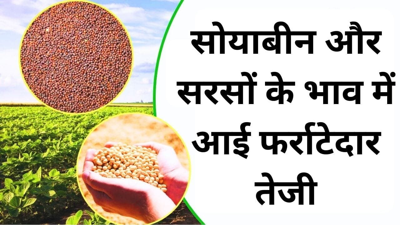 सोयाबीन और सरसों के भाव में आई फर्राटेदार तेजी। सोयाबीन और सरसों के दाम में फिलहाल तेजी दर्ज की गई है। आज मंडी में सरसो के साथ सोयाबीन के भाव में भी उथल-पुथल मचती नजर आ रही है। सोयाबीन की कीमतों में बीते कई अरसे के बाद में तेजी नजर आई है। वही सरसो से कई दिनों से जबरदस्त तेजी बनी हुई है। आइए आज के ताजा मंडी के भाव के बारे में विस्तार से जानते है।