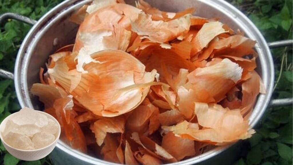 पत्तेदार सब्जियों के पौधों में छिड़काव के लिए हम आपको प्याज के छिलके और फिटकरी पाउडर से बने लिक्विड फर्टिलाइजर के बारे में बता रहे है। ये एक ऑर्गेनिक तरल खाद और कीटनाशक दोनों का काम करता है। क्योकि प्याज के छिलके पोटैशियम, कैल्शियम, आयरन, मैग्नीशियम, जिंक और सल्फर जैसे कई पोषक तत्वों से भरपूर होते है जो पौधों की ग्रोथ को बढ़ाने के लिए महत्वपूर्ण होते है। फिटकरी मिट्टी का PH संतुलन बनाए रखना, पोषक तत्वों का अवशोषण बढ़ाना, और कीटों एवं फंगस को नियंत्रित करने के लिए बहुत उपयोगी और फायदेमंद साबित होती है। फिटकरी में एंटीबैक्टीरियल और एंटिफंगल गुण होते है जो कीड़ों और फंगस को नियंत्रित करने में मदद करते है और पत्तेदार सब्जियों के पौधों को स्वस्थ रखते है।