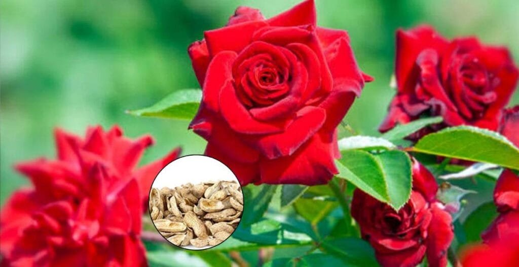 गुलाब के पौधे में मूंगफली के छिलके की खाद का उपयोग बहुत फायदेमंद और उपयोगी साबित होता है इसका उपयोग करने के लिए पहले मूंगफली के छिलकों को थोड़ा कूट लें फिर एक बर्तन में सारे छिलकों को डालकर उसमे एक लीटर पानी डालकर दो दिन के लिए भिगोकर रख दें। फिर गुलाब के पौधे की मिट्टी की अच्छे से गुड़हाई करके इस छिलकों की खाद को अच्छे से मिलकर पौधे की जड़ के आस पास डालें। ध्यान रहे इसका उपयोग हर 15 दिन में एकबार करना है ऐसा करने से गुलाब के पौधे को भरपूर पोषक तत्व प्राप्त होंगे जिससे पौधे में सीजन भर ढेरों फूल खिलेंगे।