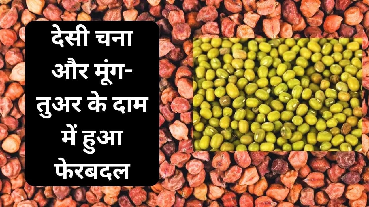 देसी चना और मूंग-तुअर के दाम में हुआ फेरबदल। देसी चने के रेट में मामूली सा बदलाव देखा गया है। मूंग और तुअर के रेट में भी जबरदस्त तेजी देखी गई है। आज के मंडी भाव में बहुत जबरदस्त बदलाव देखने को मिल रहा है। मूंग के रेट में आज उछाल देखा गया है। आइए आज के ताजा मंडी भाव के बारे में बात करते है।